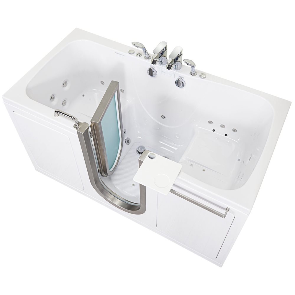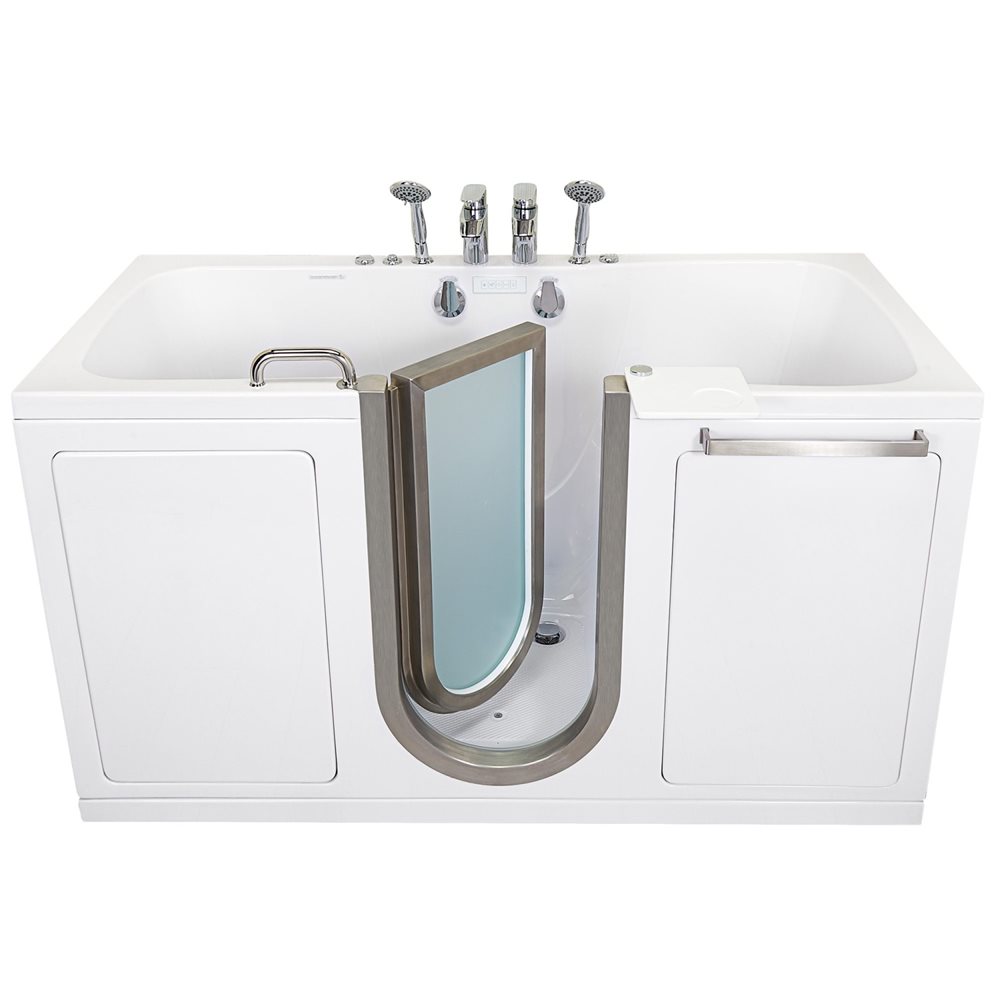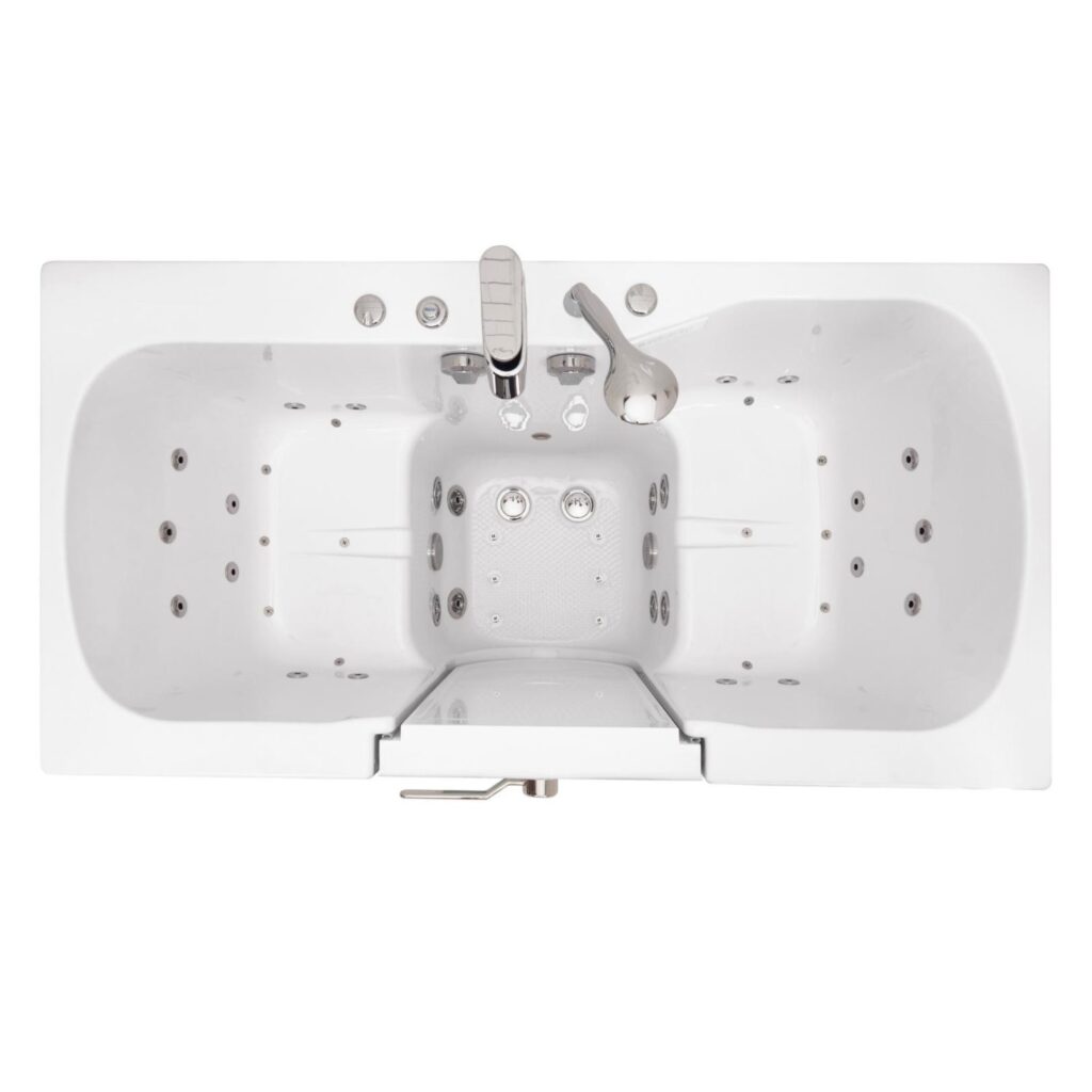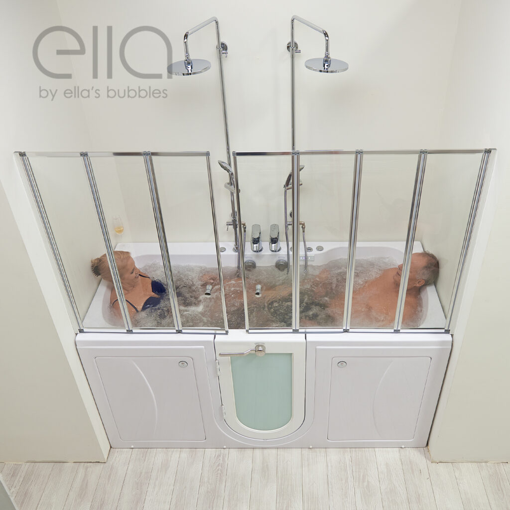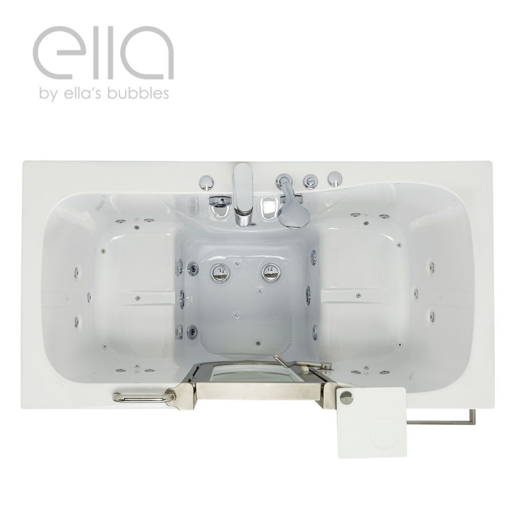 Discover relaxation with the Ella Tub4Two, the top 2-seat walk-in bathtub on the market, ideal for couples. Perfectly fitting standard 60-inch alcove openings, it’s suited for petite or average-sized bathers. Review the dimensions in the specifications to ensure a good fit for both you and your partner. The Tub4Two offers a soothing and therapeutic full body massage or showering experience. It also comes standard with a powerful independent foot massage and other great features, with the footwell filling in just a couple of minutes—no need to fill the entire tub!