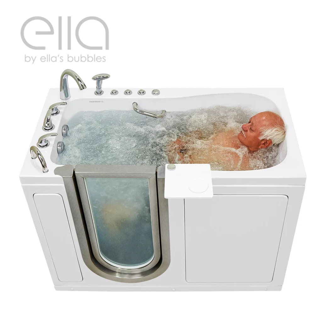 Among our most sought-after offerings, the Ella Elite represents a benchmark standard-sized walk-in bathtub that appeals to homeowners prioritizing contemporary aesthetics. This model showcases a precision-engineered brushed stainless steel door that swings inward with frosted tempered glass panels, complemented by a pristine white glossy acrylic interior basin. Built-in features include Ella’s quick-fill faucet system and proprietary dual-drain engineering, delivering unmatched drainage performance driven entirely by gravity.