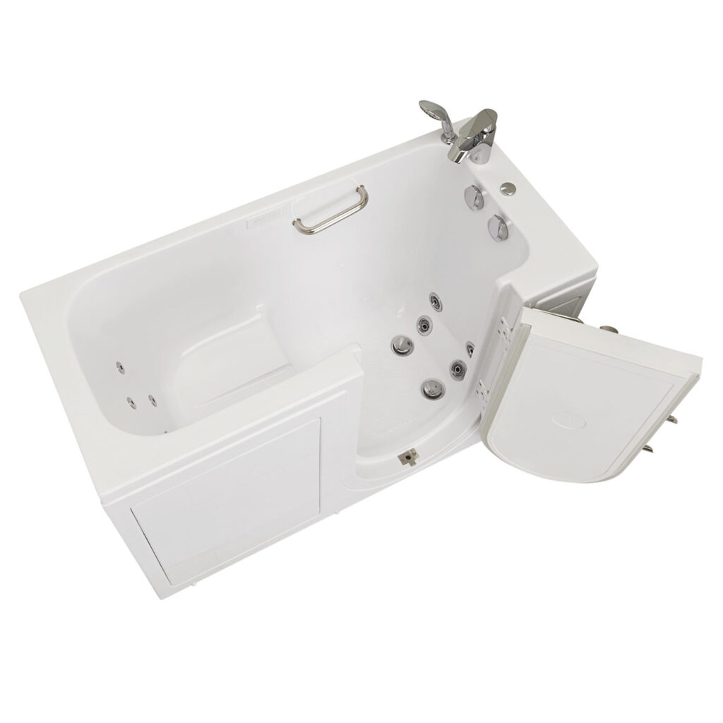 Representing Ella’s Bubbles refined approach to walk-in bathing, the redesigned Deluxe has earned its reputation as a bestseller among homeowners seeking contemporary styling paired with generous legroom. This mid-sized model strikes an ideal balance between functionality and aesthetic appeal. Performance specifications align with Ella’s exacting standards: fast-fill faucet technology couples with proprietary dual drain systems to ensure rapid, gravity-powered water evacuation.